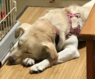 ルービーにとっては初めての長距離ドライブ。もともと自動車を怖がっていたので、移動中お母さんの手をしきりになめていたようですが、でも、最後は落ち着いたのか私のほうを向いて寝てました。