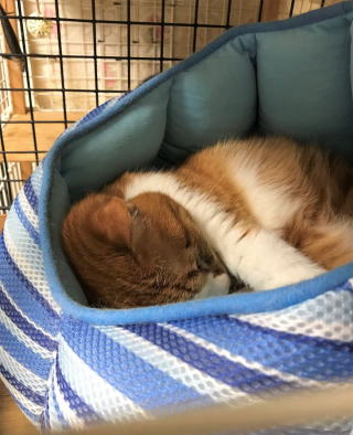 ニャン達。小豆も茶太もクールベッドで寝ています。それが暑いときには、下の段に冷え冷え板があってそこで寝ています。