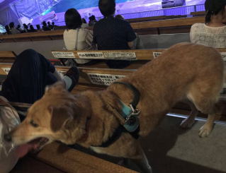 アシカ・イルカのショーも見ました。アシカがお姉さんに連れられて歩いているのを見て、ルビーはお友達が歩いていると勘違いして、突然ワンワンと呼び始めたので、お父さんが慌てて静かにするように言ってました。