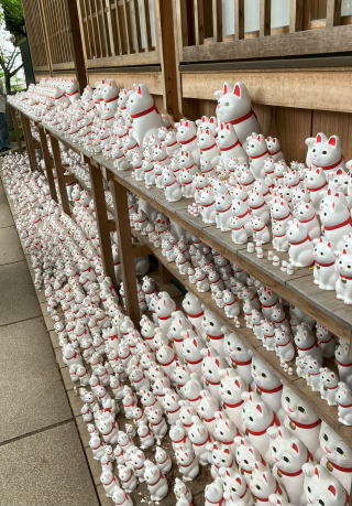 豪徳寺の招き猫は江戸時代の井伊直孝が門前の猫の手招きによって豪雨を逃れたのが縁らしい。井伊家の菩提寺になっているそうで、奥には井伊家代々のお墓もある。滋賀県彦根のご当地キャラの「ひこにゃん」は井伊家の赤備えとこの招き猫によるらしい。