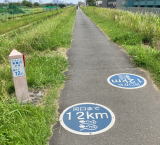 手賀沼サイクリングロードでは東西の両端の橋(手賀曙橋、北柏橋)からの距離(上)。