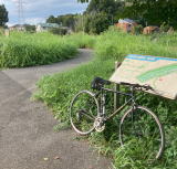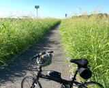 台風15号が過ぎて、翌日は少しは涼しくなるだろうと思って、川間から松戸まで江戸川サイクリングロードを走ってきた。輪行を2回するので、輪行しやすいフォルディングバイクでのんびり走った。風はやや向かい風。ところどころ草刈りができたないところがあり、かき分けて進んだり、すれ違いとかで停止したところもあった。ただ、のんびり走りすぎて、帰宅予定が遅れそうになって最後は慌てた。(30km)