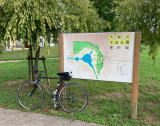 先月、手賀沼サイクリングロードの東側(利根川まで)は走ったので、西側(大堀川始点まで)を走った。距離が短いので、自宅から往復することにした。大津川からヒドリ橋で手賀沼サイクリングロードへ、北千葉導水ビジターセンターから北柏橋を通って大堀川リバーサイドウォークへ。リバーサイドウォークは自転車通行可で舗装しているが、基本的には散歩道なので途中で階段有。お盆休み中の平日だったのであまり人はいなかった。(往復で25km)