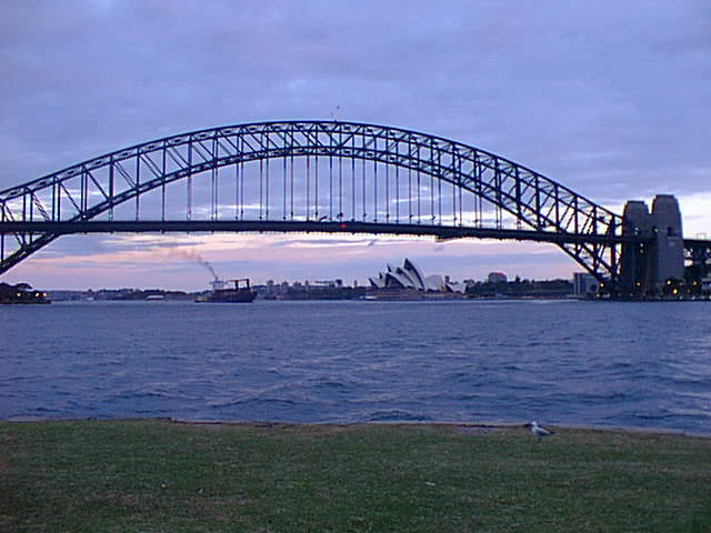 | この橋はハーバーブリッジ。向こうに小さく見える建物が有名なオペラハウス。 | 初