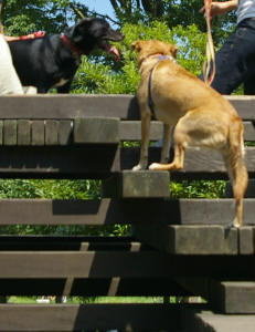 →上ドッグランで一休み。マウントしてくるワンコは嫌いです。