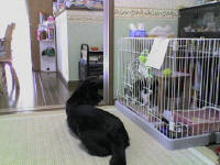 | 07年8月 大阪と草津に行きました。車の中ではラブとマリーはバリケンの中でおとなしくしていましたが、小豆(こまめ)はずっと鳴きっ放しです。 大阪だけが暑いの