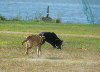 いを出しても、ラブの方は一向に意に介さず。たまに、左の写真のように相手をしています。