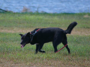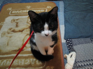 →下小豆も少し運動しました。お外が怖くて腰が引けています。