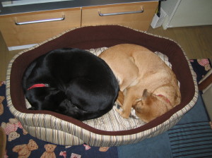 ラブは、二人の騒ぎにはお構いなしに別のところで寝ていました。