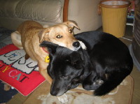 |  ↑私がNoriさんの家に来たころの写真です。遊ぶときはラブ姉さんに相手をしてもらうのですが、疲れて寝てしまいます。今日も眠いです。