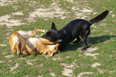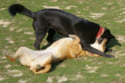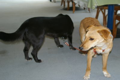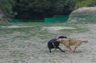 いつものようにガウガウしています。ラブのひっくり返し攻撃にマリー危うし。