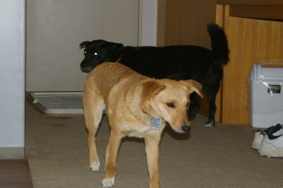 お父さんやお母さんと一緒の部屋で寝ました。お父さんは、お酒を飲んで、さっさと寝てしまいました。マリーここでも、ちゃんとシートの上におしっこをしています。ラブはお外で済ませました。