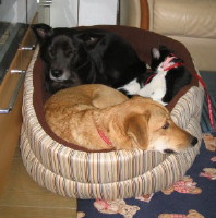 私の名前は「ラブ」。 2004年1月15日生。 性別: メス 犬種: ラブラドールリトリーバーと紀州犬?のMIX Noriさんファミリーになった日: 2004年12月4日 好きな食べ物: なんでも食べます 好きなこと: ファンヒーターの前で寝そべること 好きな場所: ホームセンター(みんながなでて、褒めてくれるから) いやなこと: 尻尾の先を触られること 虹の橋を渡った日: 2017年4月3日(13歳) 私の名前はラブラドールの「ラブ」 で、04年に「アイちゃん」ブーム があったので、それで「らぶ」になったそうです。 Noriさんファミリーには、04年12月04日に一員になりまし た。それまでは、マンション暮らしだったNoriさんファミリーが04年09月に一戸 建てに移り住んで(「その理由が「ワンコを飼いたい」だったそうです。)、しばらくして、私がやってくることになりました。 私の後に、犬のマリーと猫の小豆がファミリーの一 員になって、お姉さんとあわせて四姉妹と言われています。