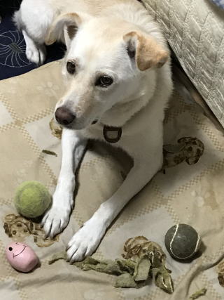 先住犬のマリー姉さんは優しくて私と一緒になって遊んでくれます。ふれあいセンターに来るまではちょっと苦労したこともありました。Noriさんのおうちはパラダイスです。