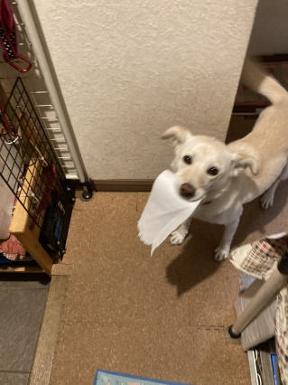 慌ててトイレットペーパーを加えて戻ってきたので、お叱りは中断です。